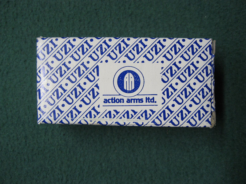 boxes later changed to a box that had a repeating blue Uzi logo as a