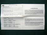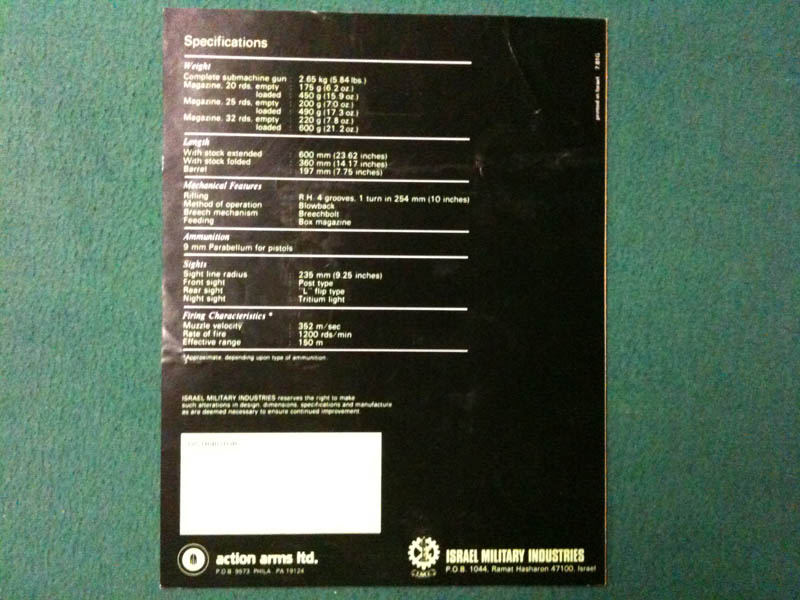 The semi auto Mini Uzi carbine came with a blank warranty card to fill